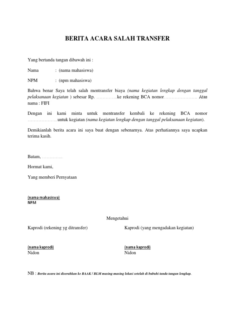 Contoh Surat Pengembalian Dana Salah Transfer / Contoh Surat Permohonan Pengembalian Dana / Maybe you would like to learn more about one of these?. Check spelling or type a new query. Maybe you would like to learn more about one of these? We did not find results for: Contoh surat pengembalian dana salah transfer.